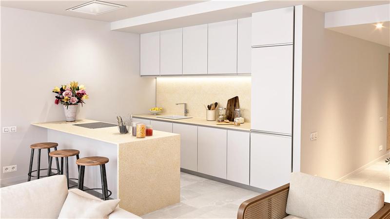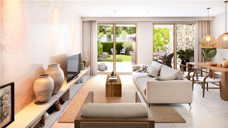 Wohnung mit ca. 151 m² Wohnfläche, verteilt auf 2 Etagen. Großzügiges und lichtdurchflutetes Wohn-Esszimmer mit offener, möblierter und ausgestatteter Küche, 3 Doppelschlafzimmer, Einbauschränke, Ankleidezimmer, 3 Badezimmer (davon 1 en suite), Doppelverglasung, Klimaanlage, Fußbodenheizung, Aerothermie, großzügige Terrasse von ca. 42 m², privater Garten von ca. 49 m², Garagenstellplatz und Gemeinschaftspool. Südausrichtung. Energieeffizienzklasse A. Voraussichtliche Fertigstellung: September 2026.