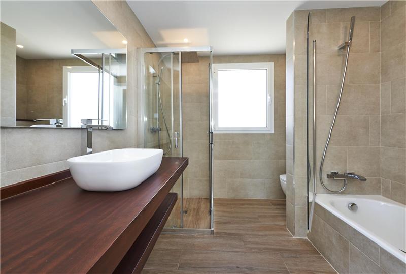 Im Obergeschoss liegen zwei weitere Doppelschlafzimmer, beide mit Bad en Suite, sowie eine sonnige Terrasse mit spektakulärem Blick auf den Golfplatz. Doppelt verglaste Fenster, Klimaanlage und Heizung mit Aerothermie-System. Mehrere Terrassen, privater Garten, eigener Pool, Abstellraum und zwei Parkplätze mit direktem Zugang zum Haus, sowie alle Annehmlichkeiten der Wohnanlage. Die exklusive Marina Puerto Adriano liegt nur etwa 1,5 km entfernt.