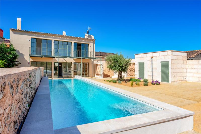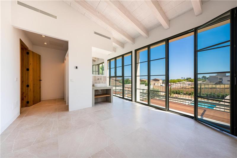 Ca. 210 m², heller Wohn- und Essbereich mit Kamin, offene Einbauküche mit Kochinsel, Hauswirtschaftsraum, 3 Doppelschlafzimmer, Einbauschränke, 3 Badezimmer (davon 2 en suite), Feinsteinzeugböden, Zentralheizung, Fußbodenheizung, Klimaanlage warm/kalt, Balkon, Terrasse, Garten, Swimmingpool, Abstellraum, Garagenstellplatz, freier Blick auf die Serra de Tramuntana. Möglichkeit zum Bau eines separaten Studios von ca. 25 m².