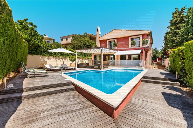 Ca. 500 m2 Wohnfläche, großes Wohnzimmer mit Kamin, möblierte Küche ausgestattet mit Elektrogeräten, 5 Doppelschlafzimmer, 6 Bäder (4 Ensuites), Gäste-WC. Heitzung, Klimaanlage kalt/warm, 2 Terrassen, Dachterrasse, Pool, 3 Garagenpakplätz, Abstellraum, Meerblick.