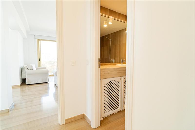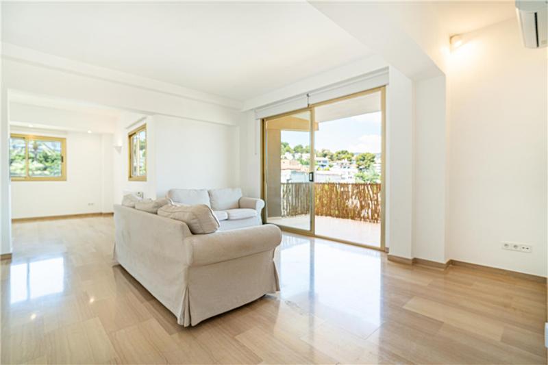 Wohnung von ca. 115 m², Wohn-Esszimmer mit Zugang zur Terrasse, möblierte und ausgestattete Küche, 3 Doppelzimmer (derzeit 2), Einbauschränke, 2 Bäder (eins en suite), Hauswirtschaftsraum, Marmorböden, Climalit-Fenster, Klimaanlage warm/kalt, Heizung, Stadtgas, Terrasse von ca. 15 m², Abstellraum, freie Aussicht. Sehr hell.