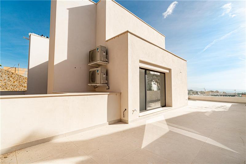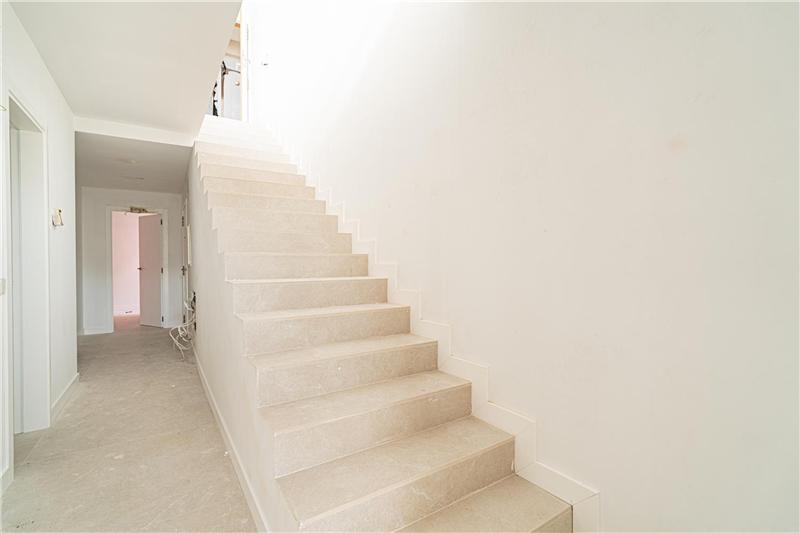 Ca. 170 m² Wohnfläche mit hellem Wohn-Essbereich, großzügiger möblierter und teilausgestatteter Küche, Hauswirtschaftsraum, 3 Schlafzimmern mit Einbauschränken sowie 2 Bädern (eines en suite). Porzellansteinzeugböden, Fußbodenheizung, Aerothermie-System, Klimaanlage warm/kalt. Abstellraum, Garage, Terrasse und Veranda. Von der Terrasse Zugang zum privaten Solarium von ca. 65 m² auf der Dachebene. Privater Zugang zum Gemeinschaftspool und zum gemeinschaftlichen Solarium. Freier Blick auf die Bucht von Palma.
