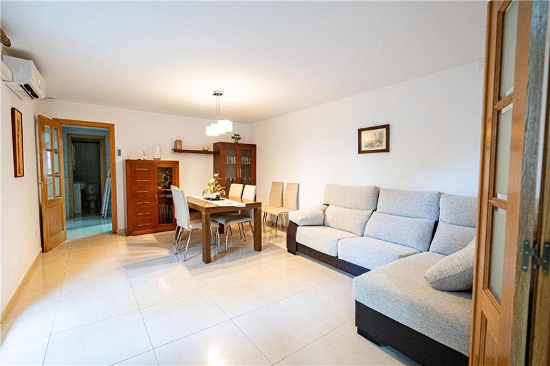 Ca. 104 m², großes Wohnzimmer mit ca. 25 m² und einem zusätzlichen Raum, Einbauküche, 2 Doppelzimmer (Möglichkeit für 3), Einbauschränke, 1 Badezimmer, Waschküche, Porzellanfliesenböden, Innenausbau aus Eichenholz, Doppelverglasung, Klimaanlage warm/kalt, Terrasse mit ca. 9 m².