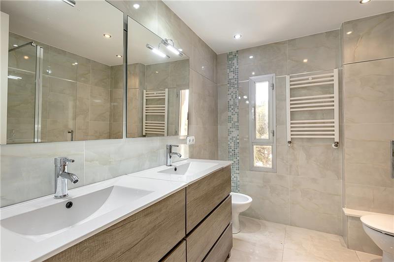 Ca. 185m2 Wohnfläche, ca.40m2 Wohnzimmer, Einbauküche mit Elektrogeräten, 4 Schlafzimmer, 2 Bäder, Gäste-WC, Heizung, Parketböden, überdachte Terrasse ca. 20m2, Garage für 2 Autos, Meerblick.