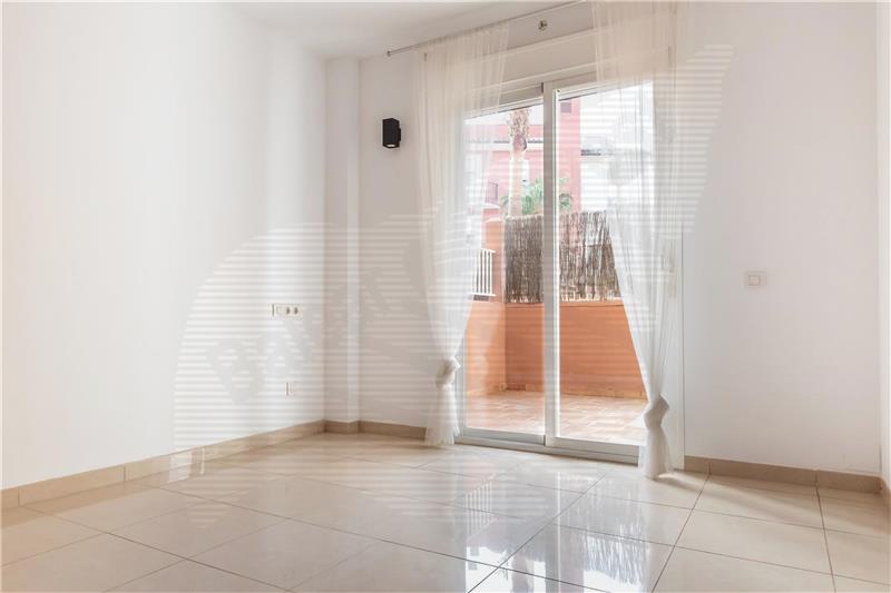Wohn-/Esszimmer, Einbauküche mit Elektrogeräten, 2 Doppelschlafzimmer mit Einbauschränken, 1 Bad, Feinsteinzeugböden, Klimaanlage kalt/warm, Climalit-Fenster, ca. 22 m2 Terrasse, ca. 35 m2 Garten, Garagenplatz.