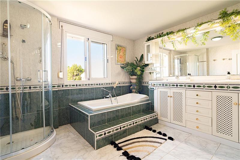 Ca. 444 m², großes Wohnzimmer mit Kamin, separates Esszimmer, große möblierte und voll ausgestattete Küche, Waschküche, 5 Doppelzimmer mit Einbauschränken, 3 Badezimmer, Porzellanfliesenböden, weiß lackierte Innenausstattung, Doppelverglasung, elektrische Rollläden, Ölzentralheizung, Klimaanlage, Terrasse, Veranda, Sonnenterrasse, Keller von ca. 170 m², Garage für mehrere Autos, Garten und beheizter Pool. Mit touristischer Lizenz.