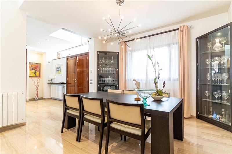 Ca. 304m2, Wohnzimmer, Esszimmer, voll ausgestattete Küche mit Essbereich, 5 Schlafzimmer, 3 Bäder, Parkett- und Porzellanböden, Heizung, Swimmingpool, Terrasse, Garage für zwei Autos.