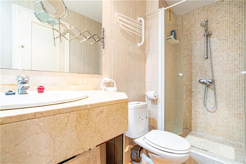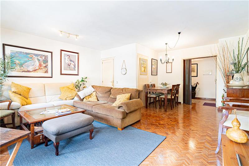 Wohnung mit ca. 121 m² Wohnfläche, großzügiges Wohn-Esszimmer mit voll ausgestatteter Küche, Hauswirtschaftsraum, 3 Doppelschlafzimmer (mit der Möglichkeit, eines in ein viertes umzuwandeln), Einbauschränke, 2 komplette Bäder (1 en suite), Einbauschränke im gesamten Wohnbereich, Parkett- und Feinsteinzeugböden, große Fenster, Klimaanlage und Stadtgasheizung. Terrasse mit ca. 22 m². optional Garage. Die Immobilie bietet eine perfekte Kombination aus Geräumigkeit, Helligkeit und einer privilegierten Lage im Zentrum von Palma.