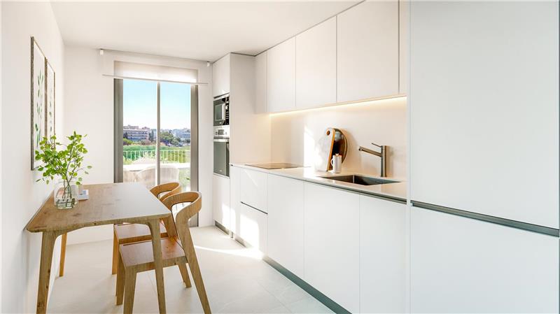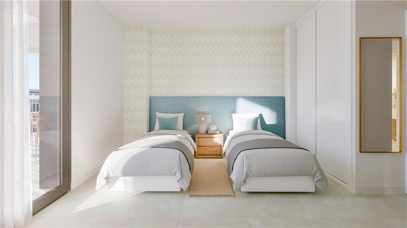 Wohn-Esszimmer, voll ausgestattete Küche mit Essbereich, 2 Doppelschlafzimmer, Einbauschränke, Ankleideraum, 2 Bäder (1 en suite), Feinsteinzeugböden, Doppelverglasung, Klimaanlage warm/kalt durch Leitung, Terrasse von ca. 16,85m2, 1 Parkplatz, Abstellraum, Gärten mit Gemeinschaftspool und Fitnessraum.