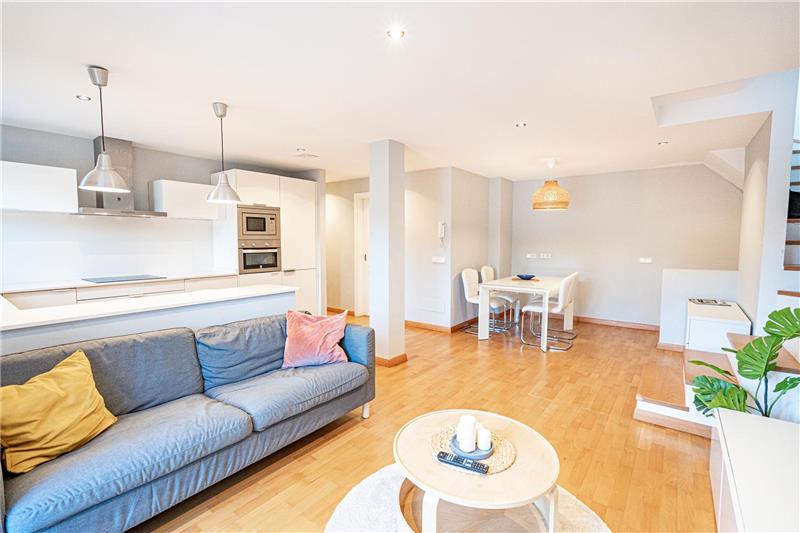 Geräumiges Wohn-Esszimmer mit Einbauküche, 2 Schlafzimmer (1 Doppel), Ankleidezimmer, Kleiderschrank, 2 Bäder, Parkettboden, Sonnenterrasse, 1 Garagenplatz und Abstellraum. Möbliert. Verfügbar ab 25. Dezember.