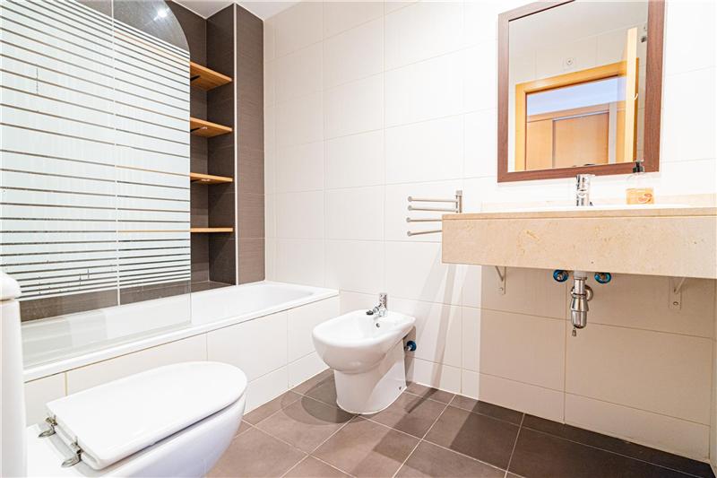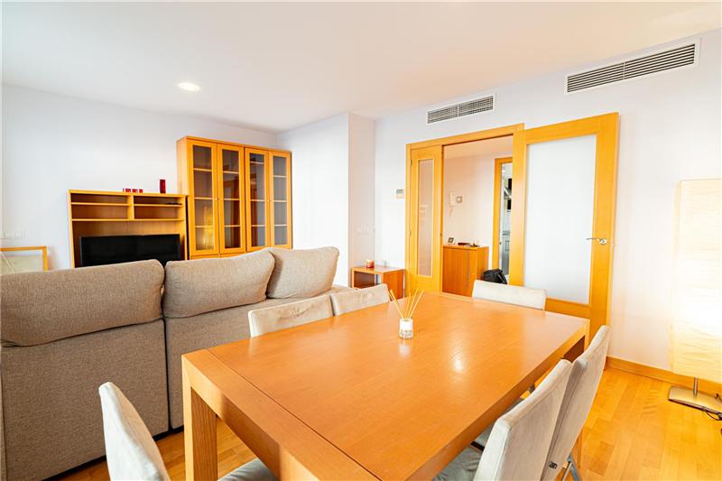 Living-dining/room, equipped/furnished kitchen, 3 bedrooms, wardrobes, 2 bathrooms (1 en suite) air conditioning cold/warm, climalit windows, parquet floors, approx. 64 m2 terraces, 1 garage space, store room, community areas with swimming pool and paddle. Furnished.