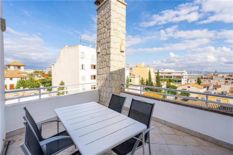 Approx. 110m², spacious living-dining room of approx. 30m² with fireplace, fitted kitchen, 4 double bedrooms with wardrobes, 2 en-suite bathrooms, toilet, parquet floors, air conditioning (hot/cold), terrace. Fully furnished. Without elevator. Sea views.