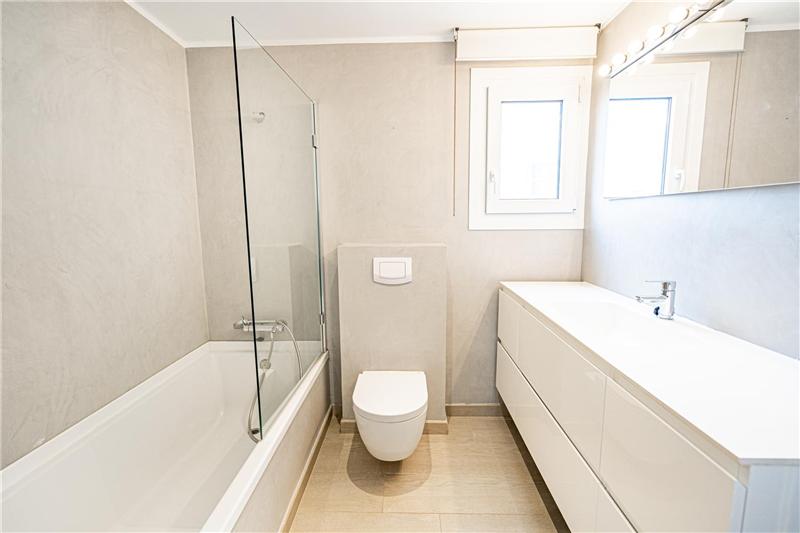 Approx. 100 m², spacious 50 m² living-dining area with open-plan kitchen integrated into the living room, utility room, 2 double bedrooms, walk-in wardrobe, 2 bathrooms, parquet and porcelain stoneware floors, Climalit double glazing, air conditioning, city gas. Semi-furnished.