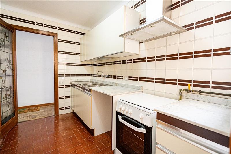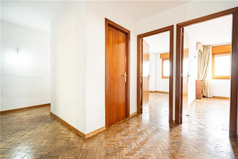 Approx. 90 m², bright living-dining area, fitted kitchen, utility room, 3 double bedrooms, walk-in wardrobe, fitted wardrobes, 1 bathroom, 1 guest toilet, parquet floors, bright balcony. In need of updating.