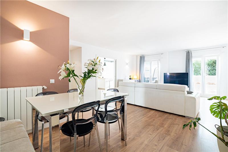 Renovated apartment of approx. 100m², spacious living-dining room of approx. 50m², furnished and equipped kitchen of approx. 18m², utility room, 3 double bedrooms, fitted wardrobes, 2 bathrooms (1 en suite), parquet floors, wooden interior carpentry, double glazing, mains gas, hot and cold air conditioning. Communal terrace (for private use), storage room and parking space.