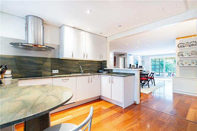 Approx. 140m², living-dining room with furnished and fully equipped open-plan kitchen, utility room, 3 double bedrooms, fitted wardrobes, 2 bathrooms, parquet floors, white lacquered interior carpentry, hot/cold air conditioning, security door, glazed terrace, communal area with swimming pool, children’s playground and tennis court, 2 parking spaces and storage room.
