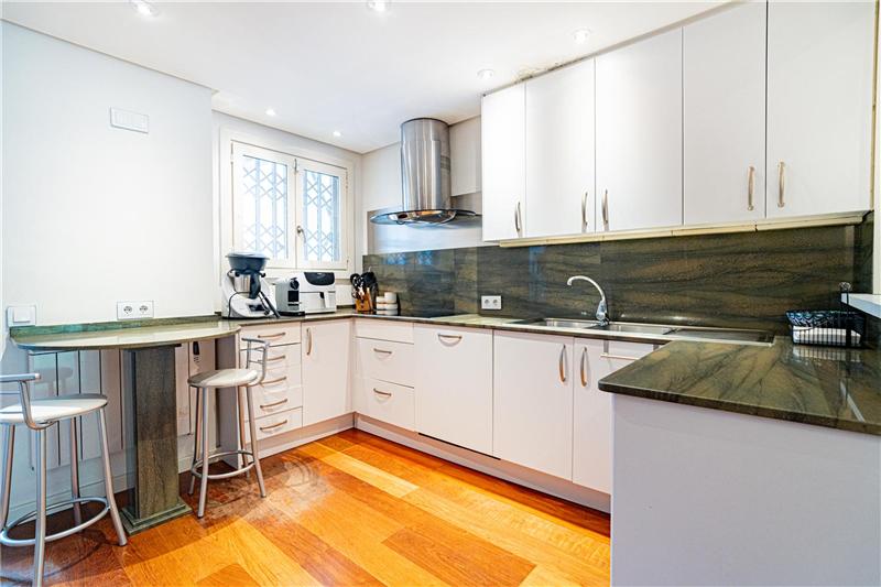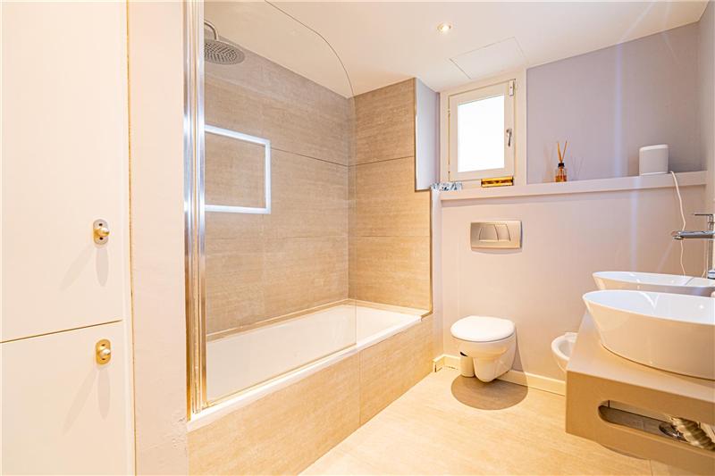 Approx. 140m², living-dining room with furnished and fully equipped open-plan kitchen, utility room, 3 double bedrooms, fitted wardrobes, 2 bathrooms, parquet floors, white lacquered interior carpentry, hot/cold air conditioning, security door, glazed terrace, communal area with swimming pool, children’s playground and tennis court, 2 parking spaces and storage room.