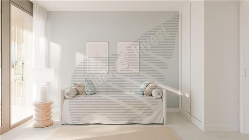 Wohn-Esszimmer, voll ausgestattete Küche mit Essbereich, 2 Doppelschlafzimmer, Einbauschränke, Ankleideraum, 2 Bäder, 1 en suite, Feinsteinzeugböden, Doppelverglasung, Klimaanlage warm/kalt durch Leitung, Veranda, Terrasse , Garten von ca. 37m2, 1 Parkplatz, Abstellraum, Gärten mit Gemeinschaftspool und Fitnessraum. Liefertermin erstes Quartal 2026