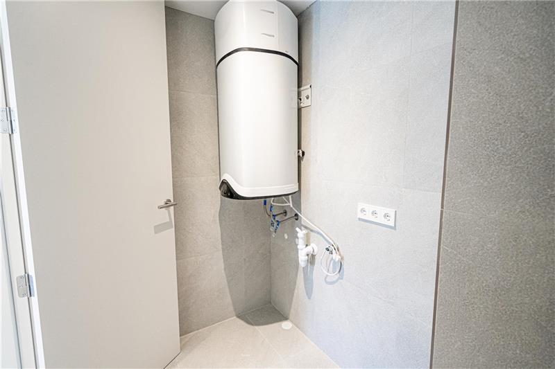 Living-dining room with open plan fitted kitchen, laundry room, 1 bedroom, wardrobe, 1 bathroom, porcelain stone floors, double glazing, air conditioning hot/cold, good qualities. Unfurnished.