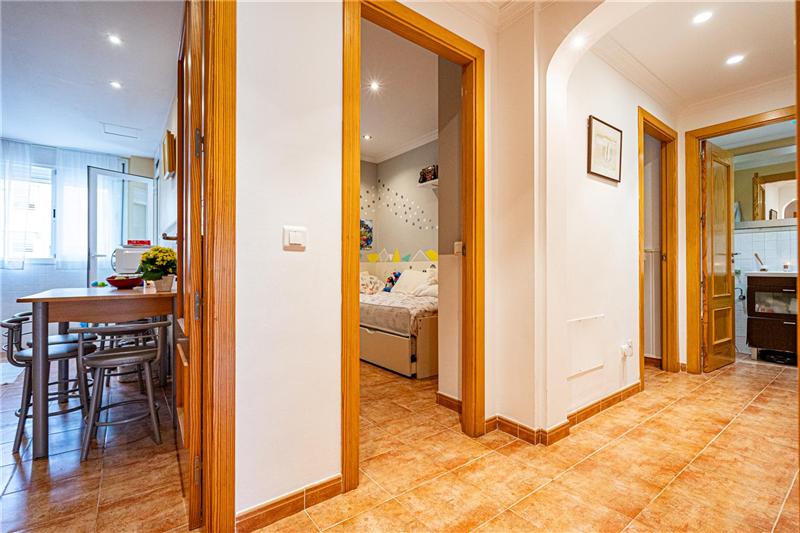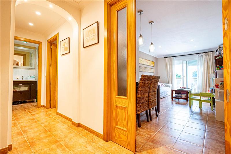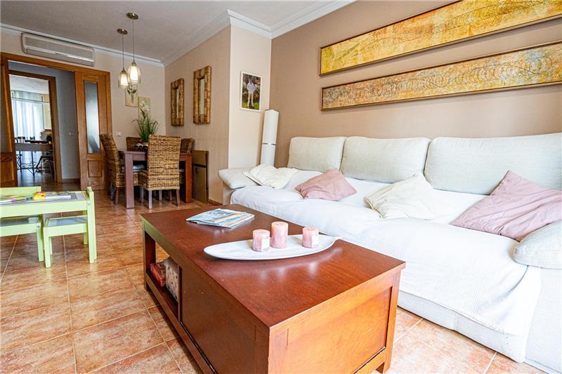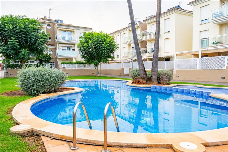 Approx. 90m², living-dining room of approx. 25m² with access to the terrace, furnished kitchen, utility room, 3 bedrooms, fitted wardrobes, 2 bathrooms (1 en suite), porcelain stoneware floors, double glazing (Climalit), hot/cold air conditioning, terrace, storage room, parking space, communal pool and gardens.