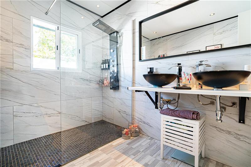 130m² aprox. construidos en 1 planta, gran salón comedor de 30m2 aprox. con chimenea, cocina office de 18 m² aprox. amueblada, coladuria, 4 habitaciones, armario, 2 baños, suelos de gres porcelánico, carpintería interior de lacada blanca, climalit, aire acondicionado por conducto, terraza de 300 m² aprox. zona de garaje de 123m² aprox. para varios coches, jardín, piscina tipo safareig. Calificación G. Registro 85360