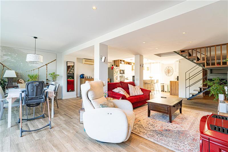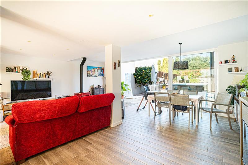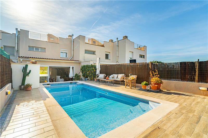 Vivienda de 130m2 aprox, distribuida en 3 plantas, amplio salón comedor de 60m2 aprox. con chimenea, cocina abierta en salón, amueblada y equipada, 3 dormitorios dobles, armarios, 2 baños, 1 aseo, suelos de gres porcelánico, climalit, amplia terraza, jardín, parking exterior, piscina