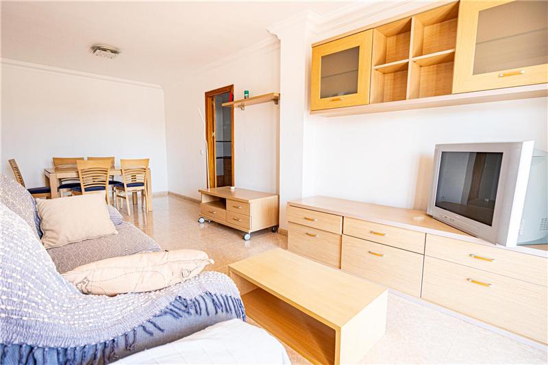 Salón comedor, cocina amueblada y equipada, 2 dormitorios dobles, armarios, 1 baño, aseo, terraza de 12 m2, 1 plaza de garaje, vistas despejadas. Amueblado.