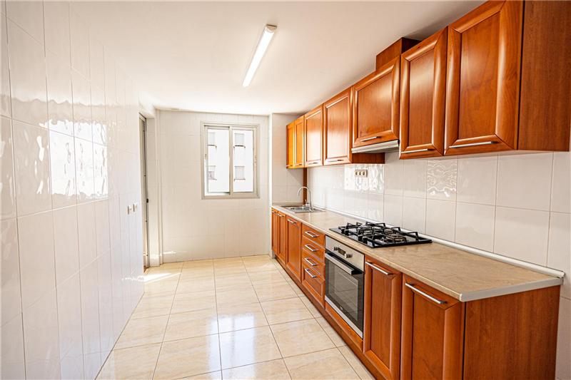 100m2 aprox., salón comedor de 26 m2 con aire acondicionado, cocina con office amueblada 15m2 aprox., coladuría, 2 habitaciones dobles, armarios, 2 baños (1 en suite), calefacción, aire acondicionado, terraza, plaza de garaje. Sin muebles.