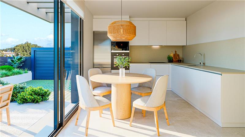 173,67m2 aprox., amplio salón comedor con cocina integrada amueblada y equipada, coladuria, 4 habitaciones dobles, armarios, vestidor, 2 baños (1 en suite), aseo, suelos de gres porcelánico y laminado, climalit, suelo radiante, aire acondicionado por conducto, terrazas, jardín, solarium, 2 plazas de parking, piscina.
