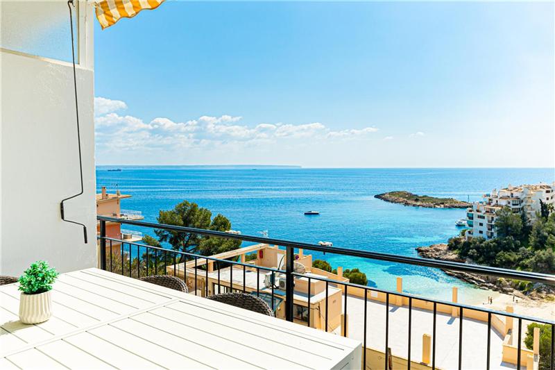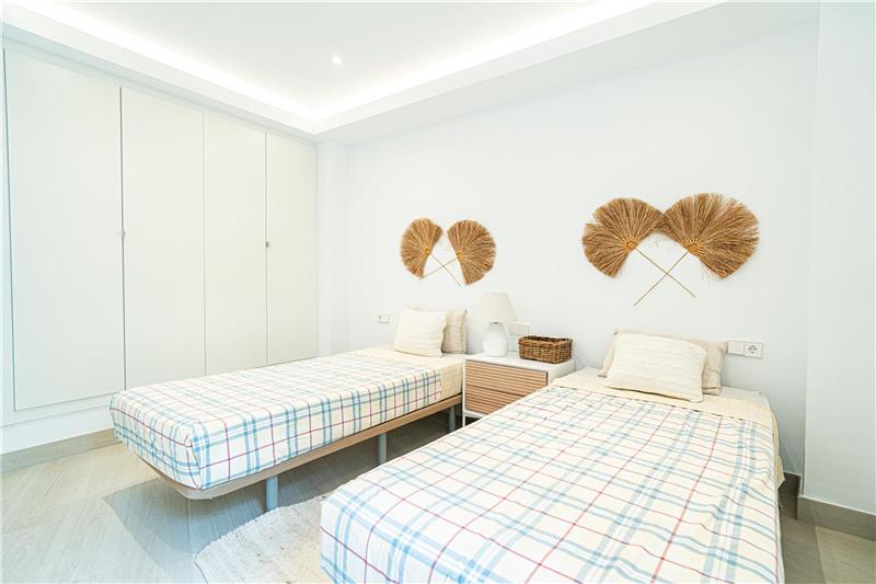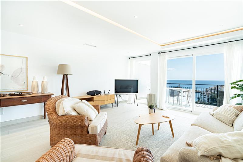 amplio salón comedor de 45 m² aprox. con cocina integrada al salón con office, 2 dormitorios dobles, armarios, 1 baño, coladuria, suelos de gres porcelánico, carpintería interior de lacada blanca, aire acondicionado frio/calor, terraza de 15m2 aprox. Vistas espectaculares al mar.