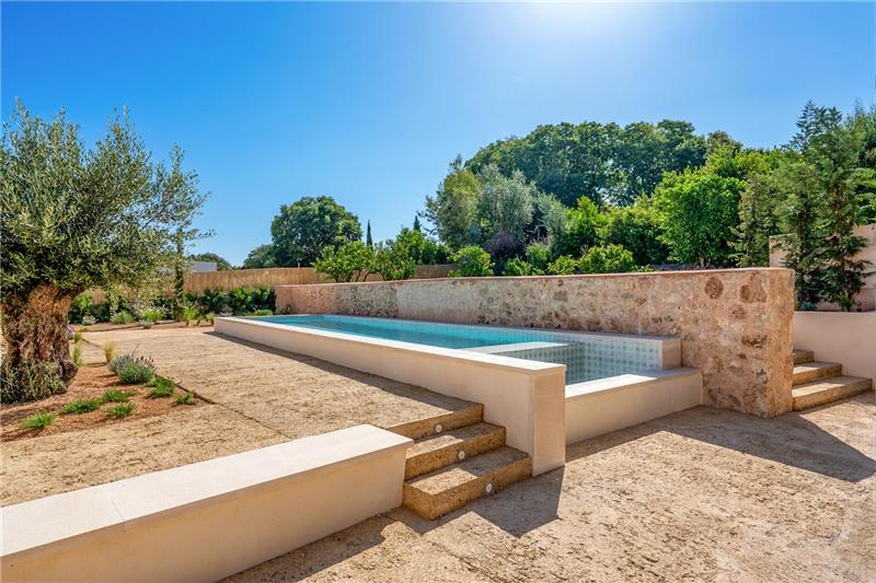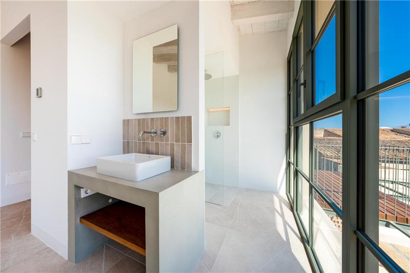 210m² aprox. luminoso salón comedor con chimenea, cocina amueblada abierta con isla, coladuria, 3 dormitorios dobles, armarios empotrados, 3 baños (2 en suite), suelos de gres porcelánico, calefacción central, suelo radiante, aire acondicionado frio/calor, balcón, terraza, jardín, piscina, trastero, plaza de garaje, vistas despejadas a la Sierra de Tramuntana. Posibilidad de construir un estudio independiente de 25m2 aprox.