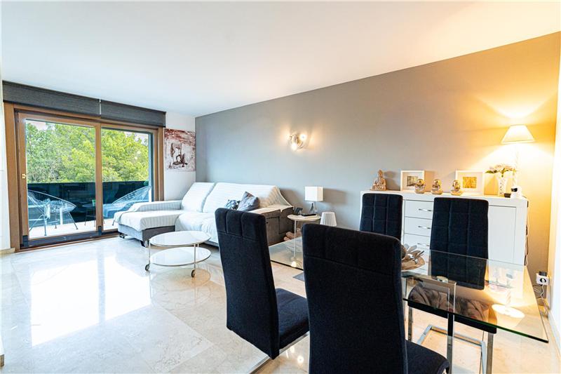 Vivienda de 111 m² aprox., salón comedor de 24 m² aprox. con chimenea, cocina amueblada y equipada con office, 2 dormitorios dobles, armarios, 2 baños (1 en suite), suelos de mármol, aire acondicionado frío/calor, terraza de 8m2 aprox., 1 plaza de garaje, trastero, piscina comunitaria. Vistas al campo.