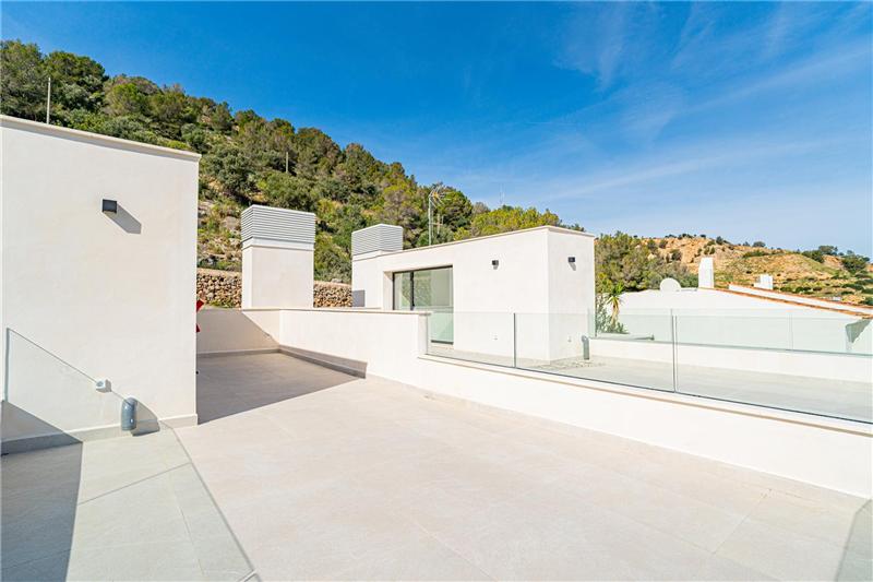 170 m² aprox. ,luminoso salón comedor, gran cocina amueblada y semi equipada, coladuria, 3 dormitorios, armarios, 1 baño (1 en suite), suelos de gres porcelánico, calefacción suelo radiante, sistema aerotermia, aire acondicionado frio/calor, trastero, plaza de garaje, terraza y porche. Desde la terraza se accede al solárium privado de 65 m² aprox. en la planta cubierta. Salida privada a la piscina y al solárium comunitario. Vistas despejadas a Bahía de Palma.