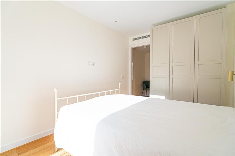 80 m² aprox., amplio salón comedor de 50 m² aprox. con cocina abierta amueblada, 2 dormitorios dobles, 2 baños (1 en suite), armarios, suelos de parquet, carpintería interior lacada de blanco, aire acondicionado por aerotermia, climalit, terraza en planta de 60 m² aprox., 1 plaza de garaje en sótano incluida con trastero y cargador para coche eléctrico. Primeras calidades.