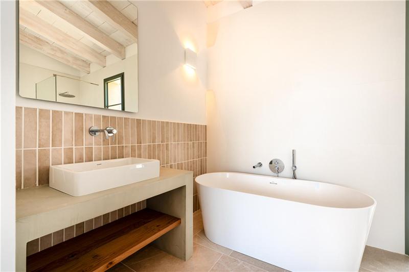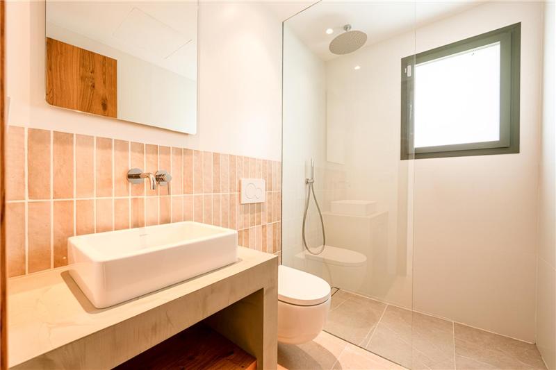Ca. 210 m², heller Wohn- und Essbereich mit Kamin, offene Einbauküche mit Kochinsel, Hauswirtschaftsraum, 3 Doppelschlafzimmer, Einbauschränke, 3 Badezimmer (davon 2 en suite), Feinsteinzeugböden, Zentralheizung, Fußbodenheizung, Klimaanlage warm/kalt, Balkon, Terrasse, Garten, Swimmingpool, Abstellraum, Garagenstellplatz, freier Blick auf die Serra de Tramuntana. Möglichkeit zum Bau eines separaten Studios von ca. 25 m².