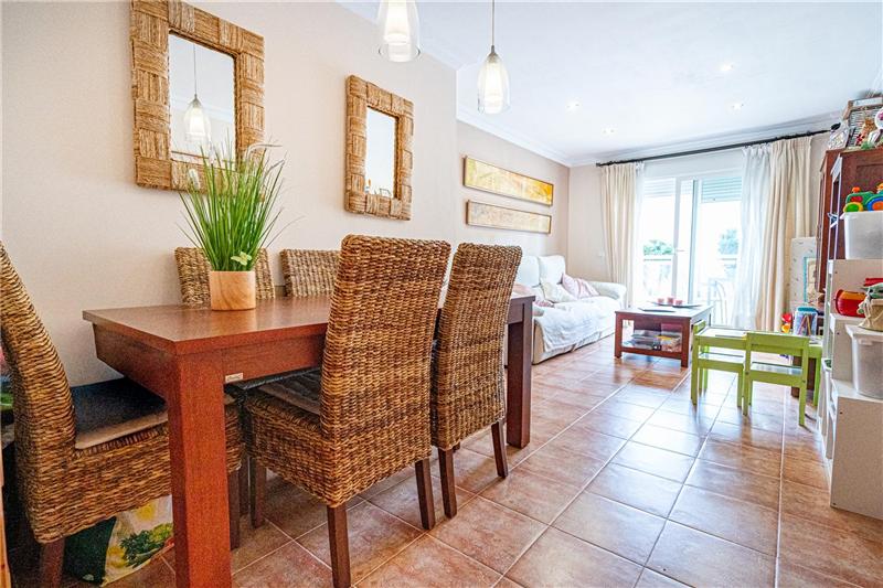 Ca. 90m², Wohn-Esszimmer von ca. 25m² mit Zugang zur Terrasse, möblierte Küche, Hauswirtschaftsraum, 2 Schlafzimmer, Einbauschränke, 3 Badezimmer (1 en Suite), Feinsteinzeugböden, Climalit-Verglasung, Klimaanlage warm/kalt, Terrasse, Abstellraum, Stellplatz, Gemeinschaftspool und Gartenanlagen.