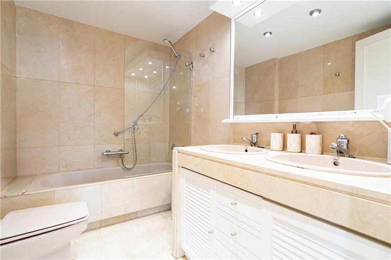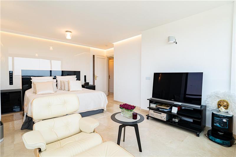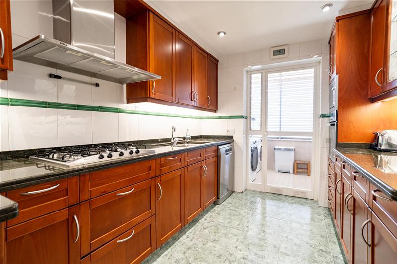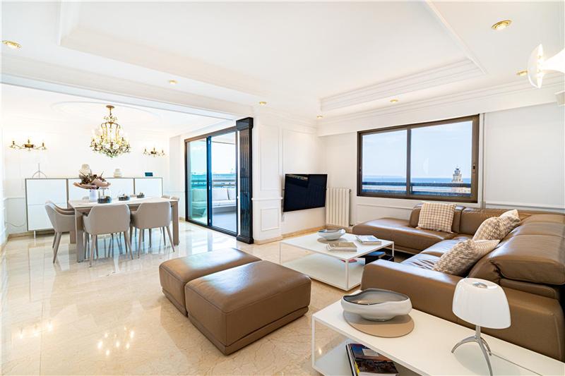 Sehr helle 160 m² Wohnung mit Meerblick, großzügiges Wohn-Esszimmer mit Meerblick, voll ausgestattete Küche, 4 Doppelzimmer, 2 Bäder (1 en suite), 1 Gäste-WC, Waschküche, Marmorböden, Doppelverglasung, Stadtgas, Terrasse, Garagenstellplatz.
