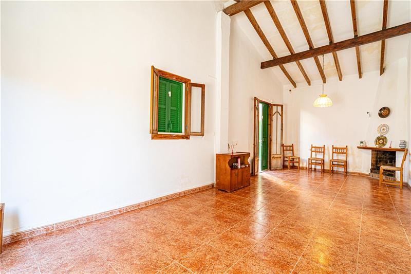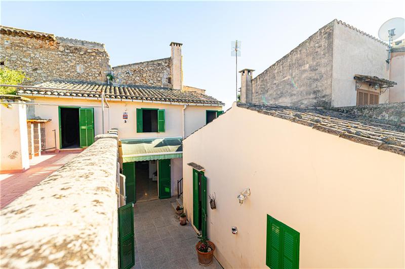 Dieses Anwesen besteht aus drei Gebäuden: einem 161 m² großen Erdgeschoss, einer überdachten Veranda (Garage) und einem zweistöckigen Reihenhaus. Das Erdgeschoss verfügt über ein separates Wohnzimmer mit Kamin. Das Haupthaus bietet ein geräumiges Wohn-Esszimmer mit Kamin, eine renovierte offene Küche, zwei Schlafzimmer, zwei Badezimmer (eines davon en suite) sowie die Möglichkeit, im Obergeschoss drei weitere Schlafzimmer einzurichten. Von dort gelangt man direkt auf eine 30 m² große Terrasse (Solarium) mit freiem Ausblick. Diese Immobilie bietet vielfältige Nutzungsmöglichkeiten und liegt im Herzen von Petra, einem malerischen Städtchen im Zentrum Mallorcas.