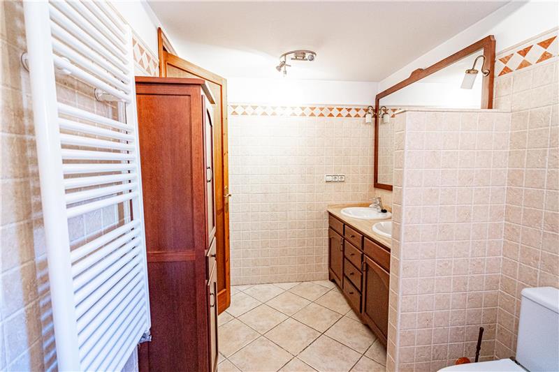 Ca. 200m2, in 3 Etagen, Wohn-Esszimmer, voll ausgestattete Küche mit Essbereich, Kamin, 4 Doppelschlafzimmer, leiderschränke, Ankleidezimmer, 3 Bäder (1 en suite), Steinzeugböden, Doppelverglasung, Werkstattraum, Innenhof, Garage für Auto und Motorrad. Teilmöbliert
