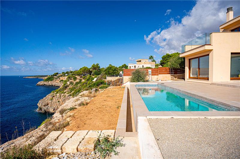 Ca. 220 m² auf 2 Etagen verteilt, helles Wohn-/Esszimmer von ca. 60 m² mit offener Küche und Kamin, 5 Doppelzimmer, 3 Badezimmer (2 en suite), Stein- und Keramikböden, Innen- und Außenausbau aus Iroko-Holz, Luftwärmeheizung, Klimaanlage warm/kalt, Terrassen, Außenparkplatz für 2 Autos, Swimmingpool. Erstklassige Qualität. Panoramablick.