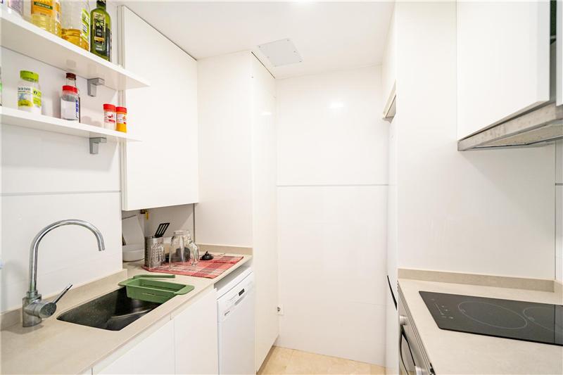 Approx. 17 m² living–dining room, furnished and fully equipped kitchen, 1 double bedroom with wardrobe, bathroom, hot/cold air conditioning, security door, and communal terrace. Community fees included. Unfurnished.