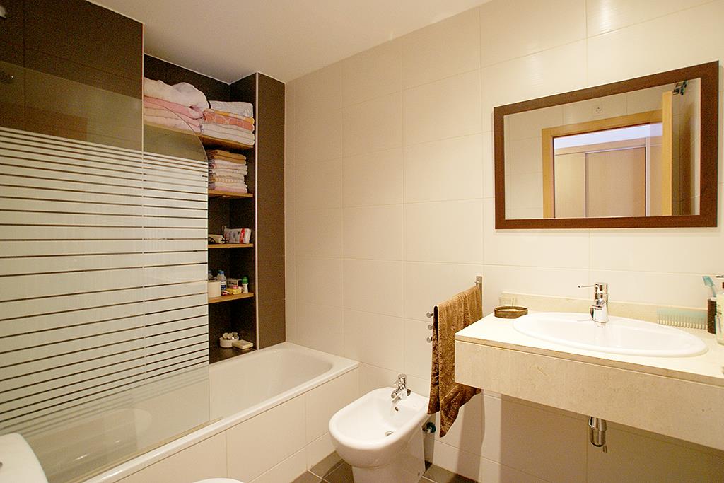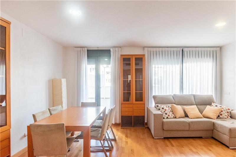 Living-dining/room, equipped/furnished kitchen, 3 bedrooms, wardrobes, 2 bathrooms (1 en suite) air conditioning cold/warm, climalit windows, parquet floors, approx. 64 m2 terraces, 1 garage space, store room, community areas with swimming pool and paddle. Furnished.
