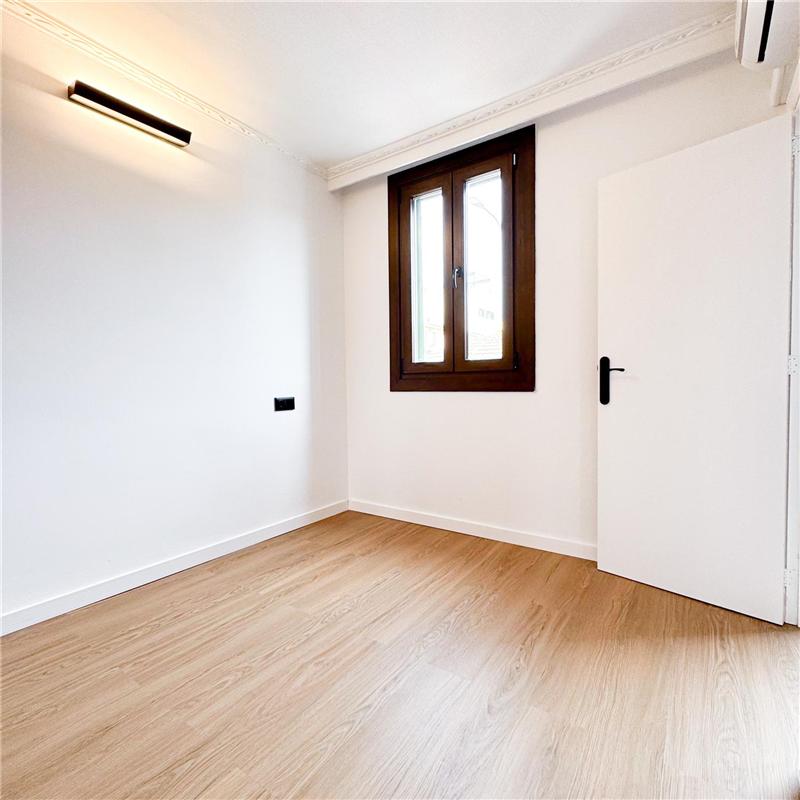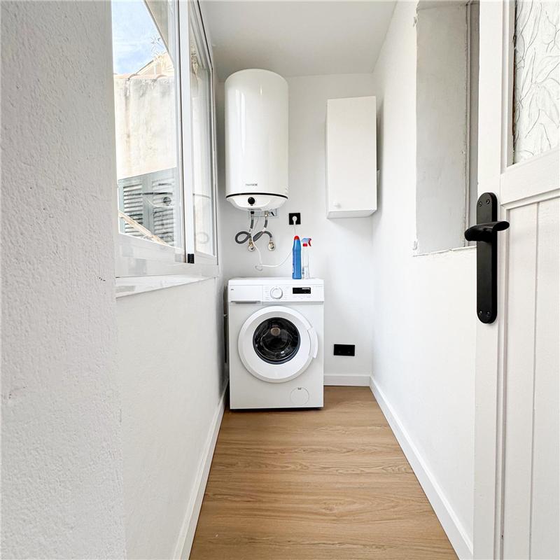 Living-dining room, furnished and equipped kitchen with breakfast area, utility/laundry room, 3 bedrooms, built-in wardrobe, bathroom, guest toilet, parquet floors, hot/cold air conditioning in the living room, white lacquered interior carpentry, double-glazed (Climalit) windows, storage room, balcony. Renovated. Unfurnished