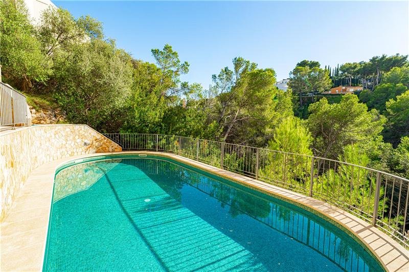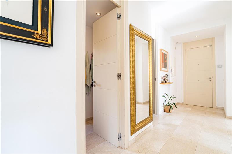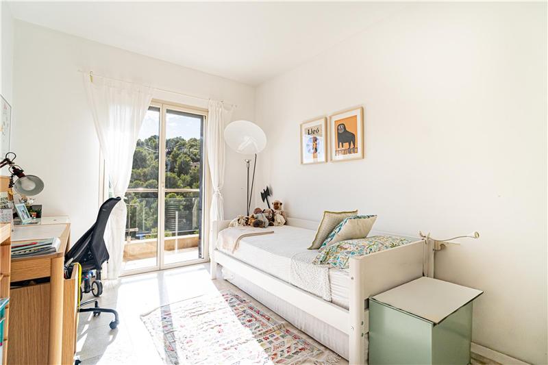 Approx. 172 m² built area, two living rooms with a total of approx. 72 m², kitchen of about 50 m² divided into two areas and with direct access to the outdoor terrace, furnished and fully equipped kitchen, laundry room, four spacious double bedrooms (two with direct access to the terrace), fitted wardrobes, two full bathrooms (one en suite), guest toilet, natural stone floors, double-glazed windows, electric shutters and awnings, heating, hot and cold air conditioning, storage room, large garage space, covered terrace of approx. 25 m² + outdoor terrace of approx. 40 m², two communal swimming pools surrounded by green areas with views of the forest and partial sea views. Building with few neighbours, very quiet, and with a communal osmosis water system.