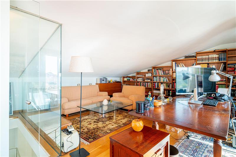 Approx. 304 m² built area, 2 living rooms with fireplaces, fully furnished and equipped kitchen with breakfast area, 5 bedrooms (3 doubles), 4 bathrooms (3 en suite), 1 guest toilet, laundry room, walk-in wardrobe, white lacquered interior carpentry, parquet and porcelain stoneware floors, Climalit double glazing, mains gas heating, hot/cold air conditioning, approx. 215 m² of terraces, garage parking space, storage room, with possibility to rent additional parking spaces. The building offers a communal swimming pool. Energy rating: E. Registry number: 2024/29896.