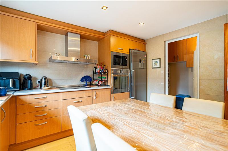 Approx. 153 m², spacious living-dining room of approx. 25 m², fitted kitchen with breakfast area, utility room, 3 double bedrooms with built-in wardrobes, 3 en-suite bathrooms, guest toilet, marble and ceramic floors, hot-and-cold air conditioning, electric shutters, roof terrace of approx. 70 m², porch, storage room, and 1 parking space.