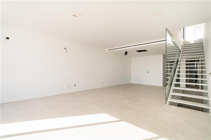 Ca. 170 m² Wohnfläche mit hellem Wohn-Essbereich, großzügiger möblierter und teilausgestatteter Küche, Hauswirtschaftsraum, 3 Schlafzimmern mit Einbauschränken sowie 2 Bädern (eines en suite). Porzellansteinzeugböden, Fußbodenheizung, Aerothermie-System, Klimaanlage warm/kalt. Abstellraum, Garage, Terrasse und Veranda. Von der Terrasse Zugang zum privaten Solarium von ca. 65 m² auf der Dachebene. Privater Zugang zum Gemeinschaftspool und zum gemeinschaftlichen Solarium. Freier Blick auf die Bucht von Palma.