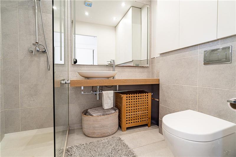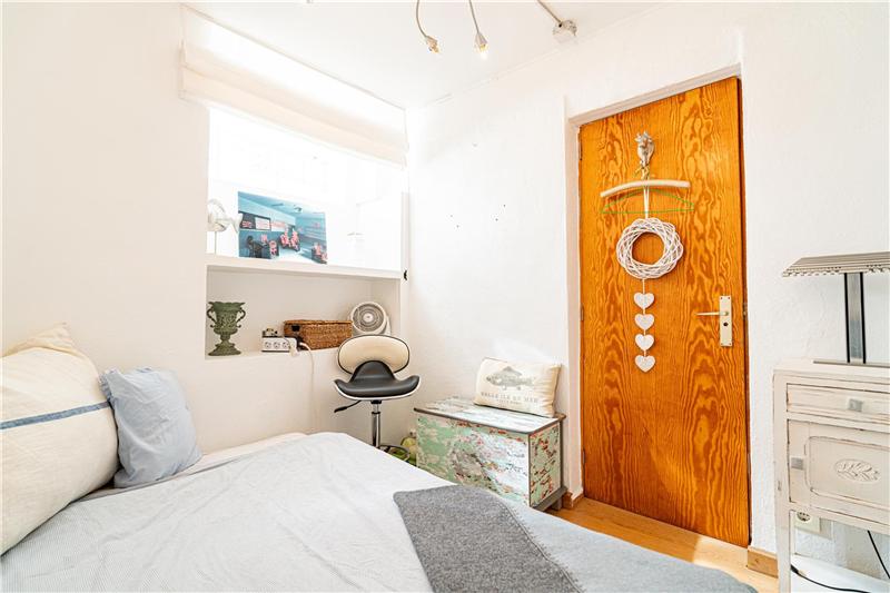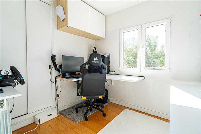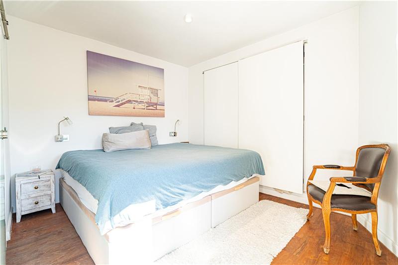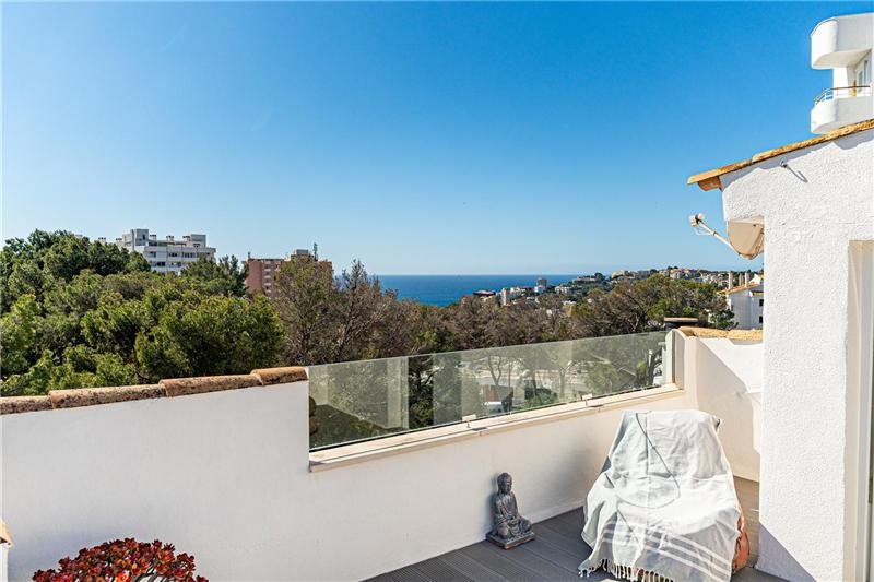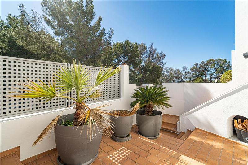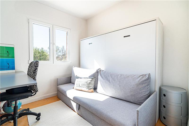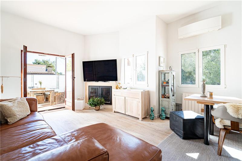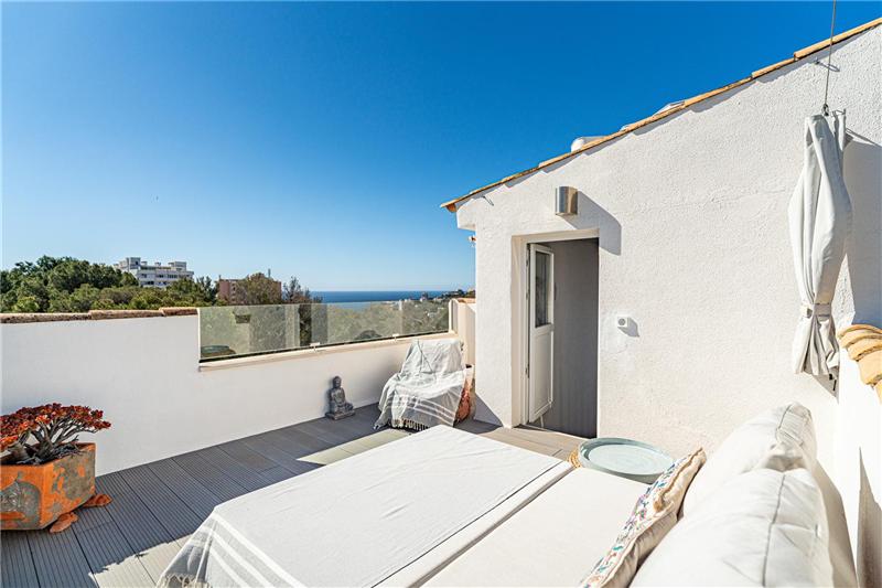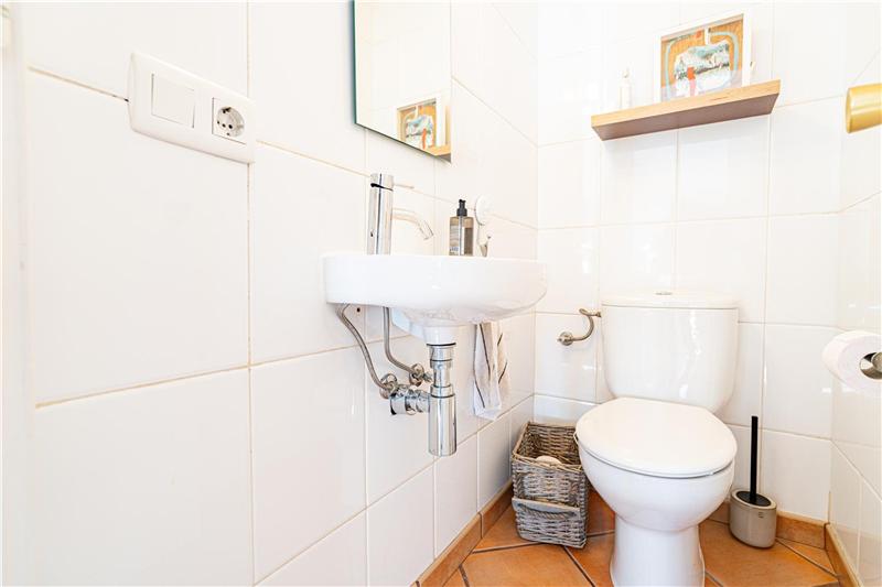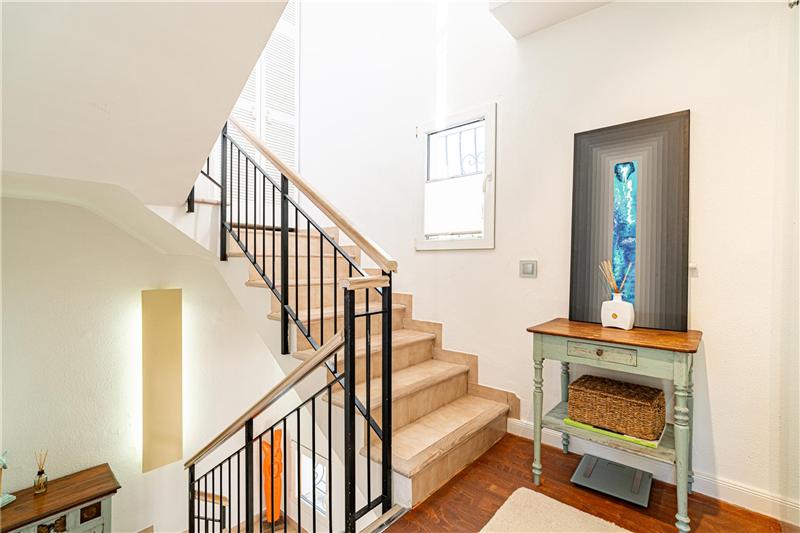 Ca. 240 m2 bebaute Fläche, drei Etagen. Im Erdgeschoss: Esszimmer, voll ausgestattete Küche, Waschküche, Wohnzimmer mit Kamin, Zugang zur Terrasse mit Grillplatz, WC, 4 Zimmer. Im ersten Stock: 1 Doppelschlafzimmer mit Bad en suite, 2 Einzelschlafzimmer mit 1 gemeinsamen Bad, Einbauschränke. Hochwertige Materialien, Parkettböden, Doppelverglasung, hohe Decken, Zentralheizung, Klimaanlage warm/kalt. Im Obergeschoss: Dachterrasse mit Meerblick. Große Garage mit Büro, Waschküche, ein weiterer privater Parkplatz. Unmöbliert.