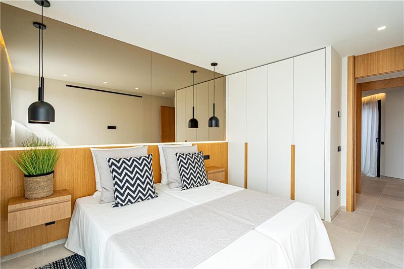 Ca. 154,66m2, geräumiges Wohn-Esszimmer mit Kamin und integrierter Einbauküche, 4 Doppelschlafzimmer, Einbauschränke, 3 Bäder, 2 en suite, Eichen-/Walnussholz, Marmor, Feinsteinzeug, Naturstein, Hausautomation, Aerothermie, Fussbodenheizung, Wärmedämmung, Veranda von ca. 17,10m2, Solarium von ca. 135m2, Garage, Gartenanlagen, Sportbereich, Gemeinschafts- und Privatpool. Fertigstellung: Phase I Ende 2024.