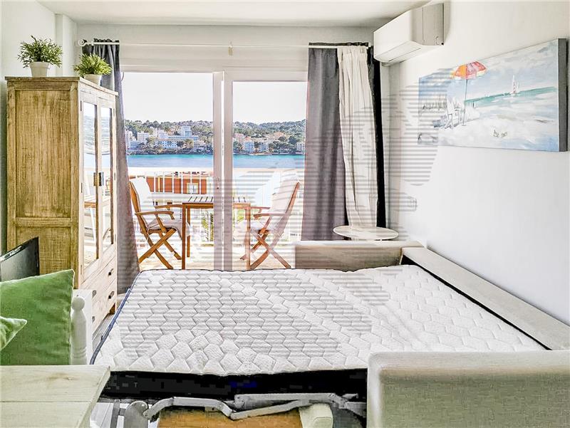 Salón comedor, cocina amueblada, 1 habitación, armario, 1 baño, suelos de gres, aire acondicionado frío/calor, balcón, vistas panorámicas al mar. Amueblado.